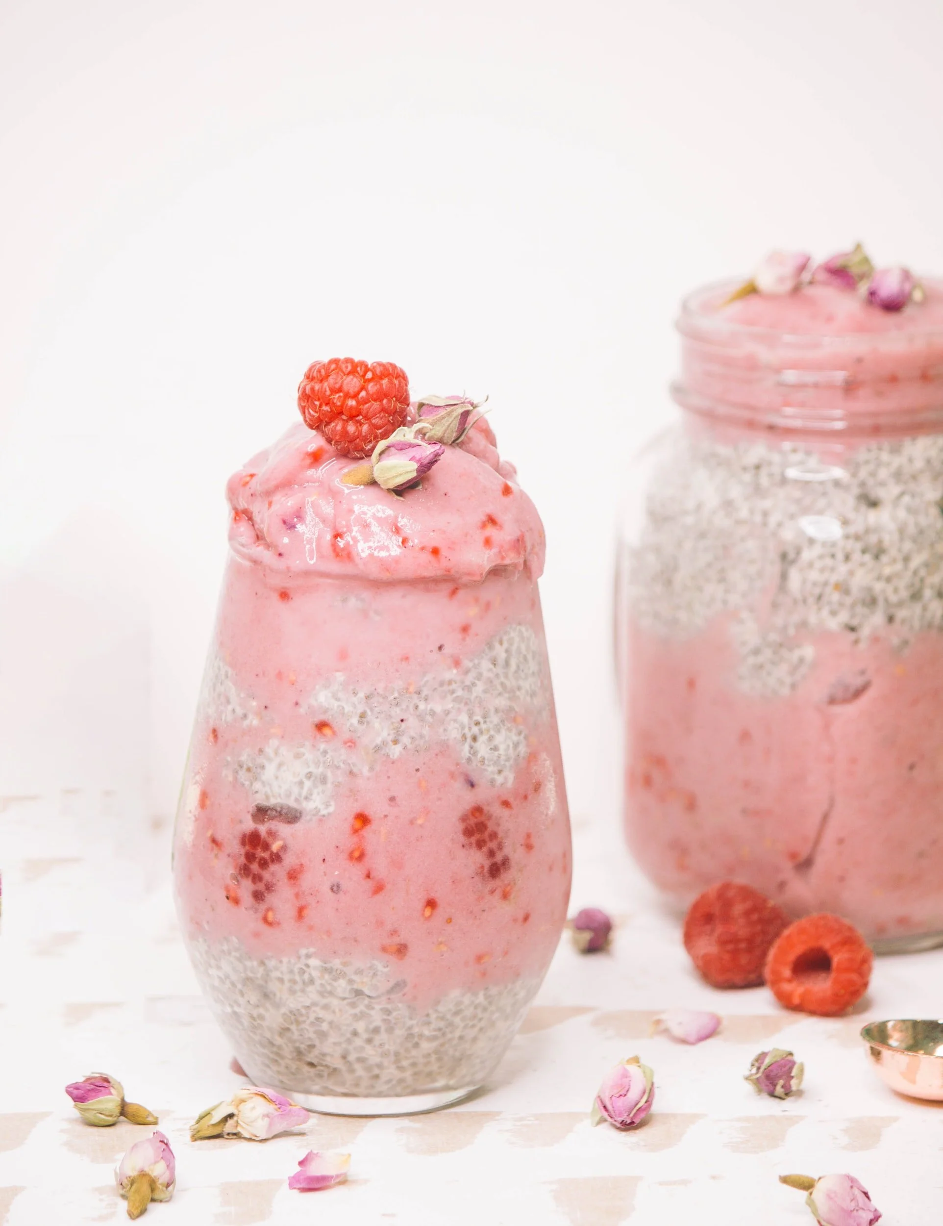 Top the Raspberry Chia Pudding with the rest of the raspberries before eating.